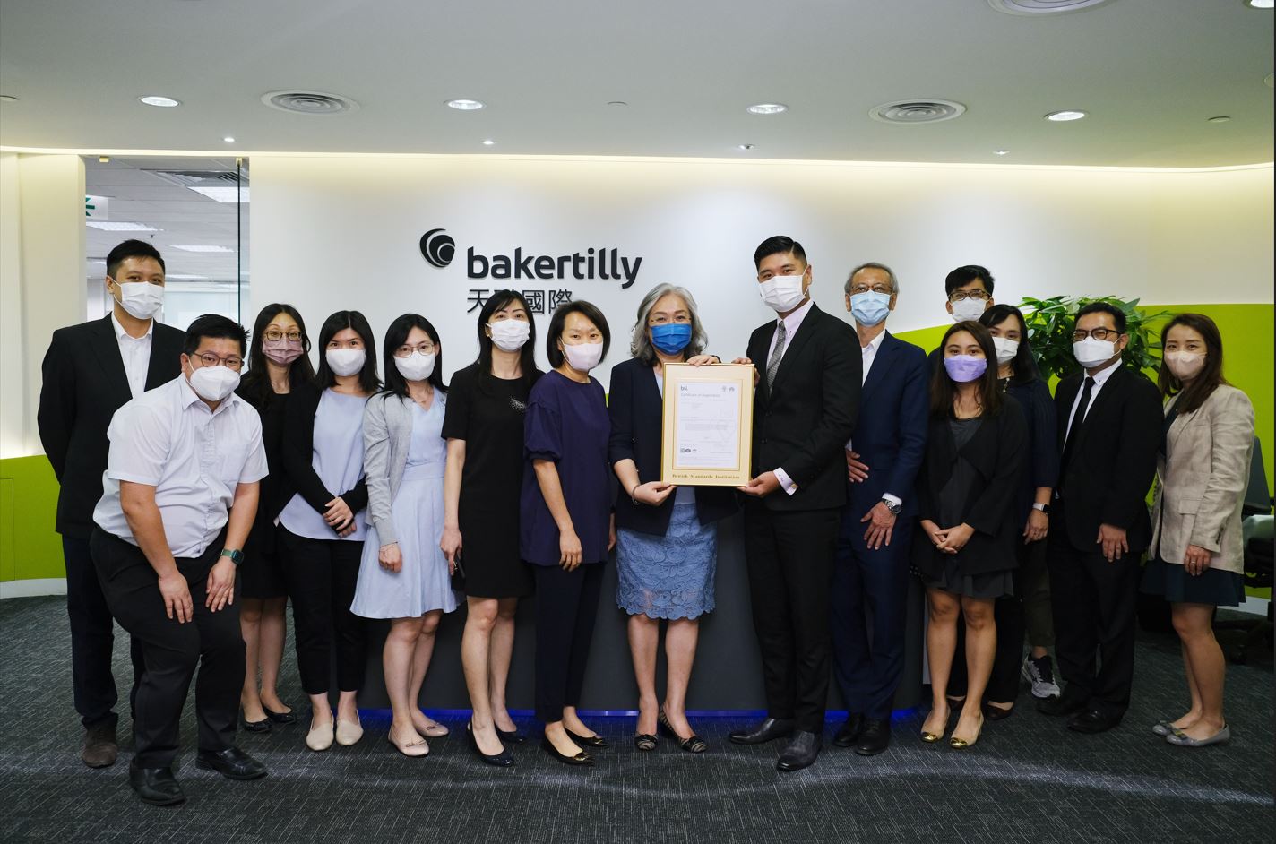 Miss Cynthia Lo, the Managing Director of Baker Tilly Hong Kong, received the ISO/IEC 27001 certificate from Mr Raymond Lui, Director, Enterprise Solution & Marketing of BSI Hong Kong.