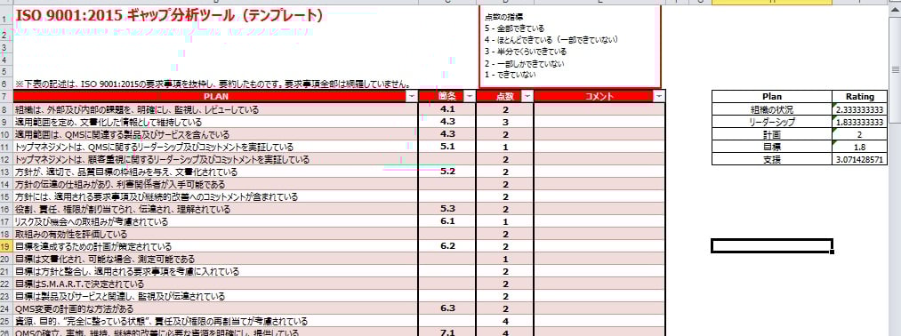 ■ギャップ分析テンプレート結果サンプル画像