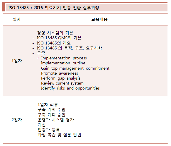 본 교육을 통해 ISO13485:2016에 대하여 명확하게 이해하고, 품질경영시스템 유지 또는 신규 수립에 적용할 수 있는 능력을 향상시킬 수 있습니다.